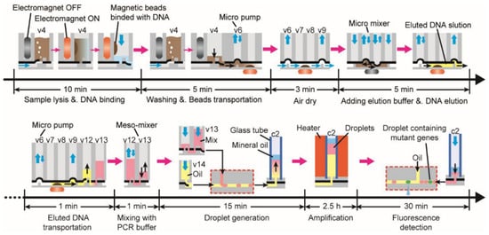 - Ohashi, T.; Kuyama, H.; Hanafusa, N.; Togawa, Y. A simple device using magnetic transportation for droplet-based PCR. Biomed. Microdevices 2007, 9, 695–702. [Google Scholar] [CrossRef]