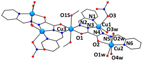 3.1.1. [Cu5(L1)2(H2O)8(MeOH)2(NO3)2](NO3)4 (1)