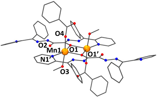 3.1.2. [Mn2(HL2)2(BzO)2(MeOH)2]·2MeOH (2)
