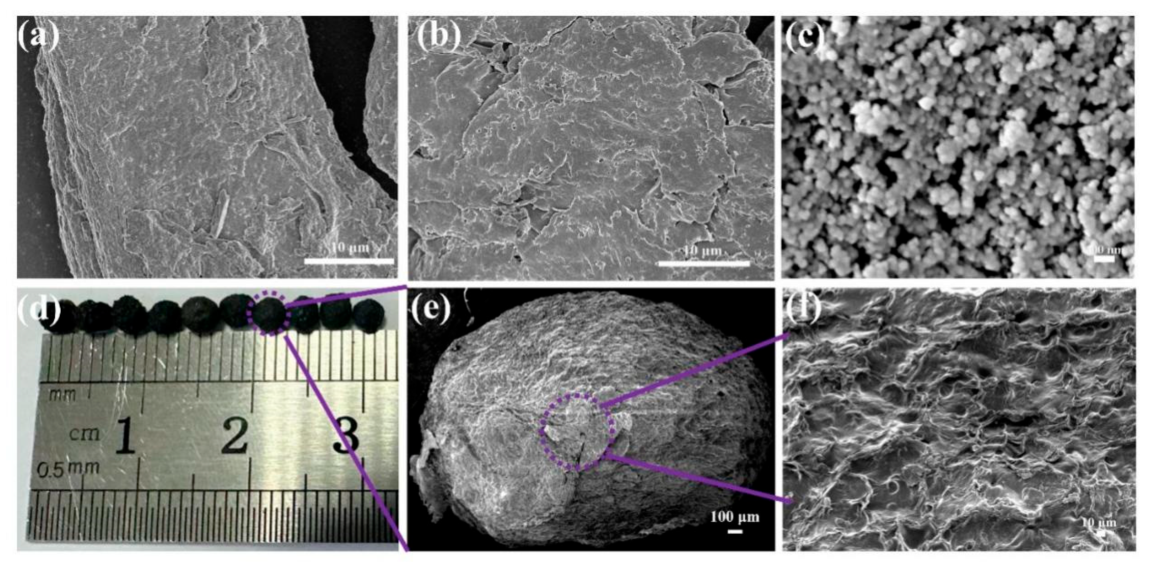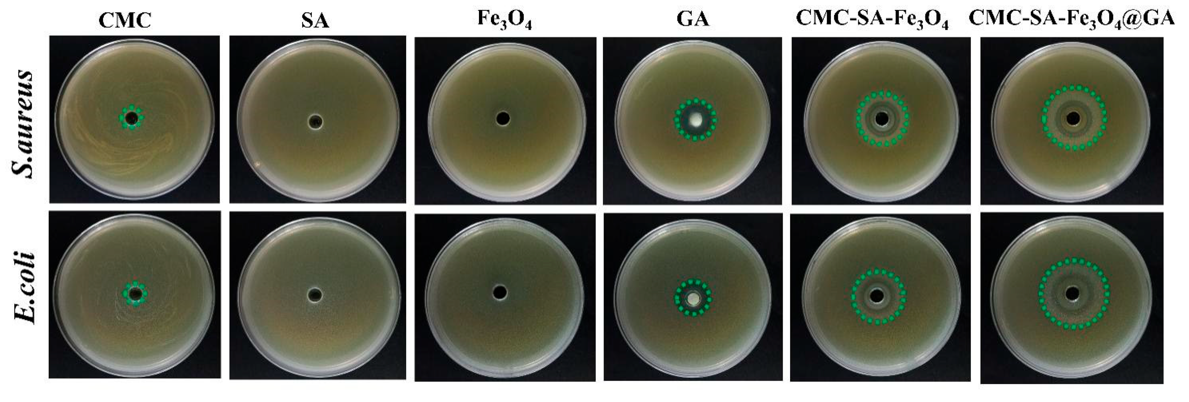 3.1. Construction of CMC-SA-Fe3O4@GA Hydrogel Beads Analysis