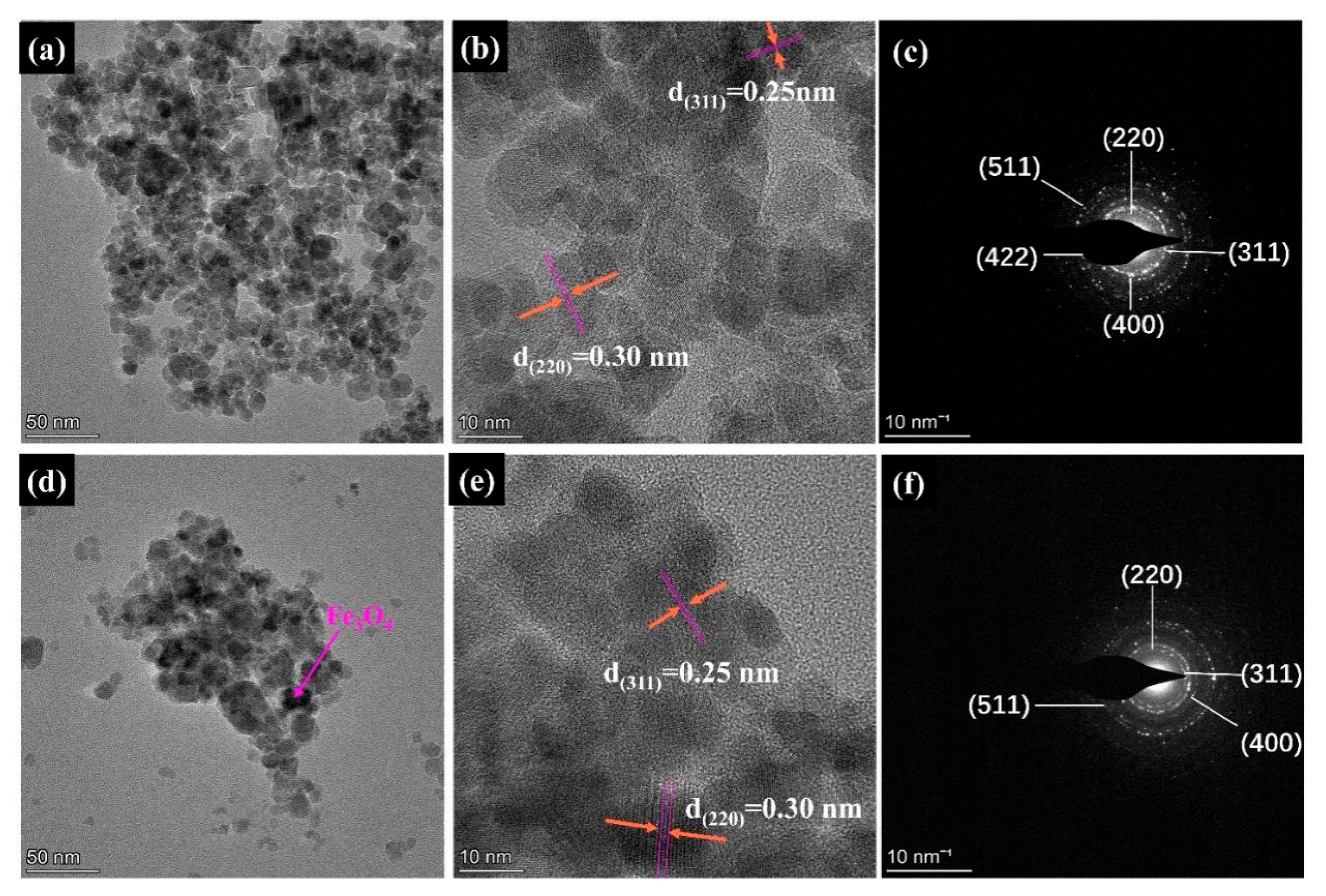 - Dawn, R.; Kiran, C.; Tjiu, W.W.; Aabdin, Z.; Zzaman, M.; Faizal, F.; Panatarani, C.; Joni, I.M.; Chandra, G.; Amemiya, K.; et al. Effect of spin and orbital selectivity of DNA induced SiO2 coated Fe3O4 nanoparticles: X-ray magnetic circular dichroism study. Colloid. Surface. A. 2025, 709, 136111. [Google Scholar] [CrossRef]