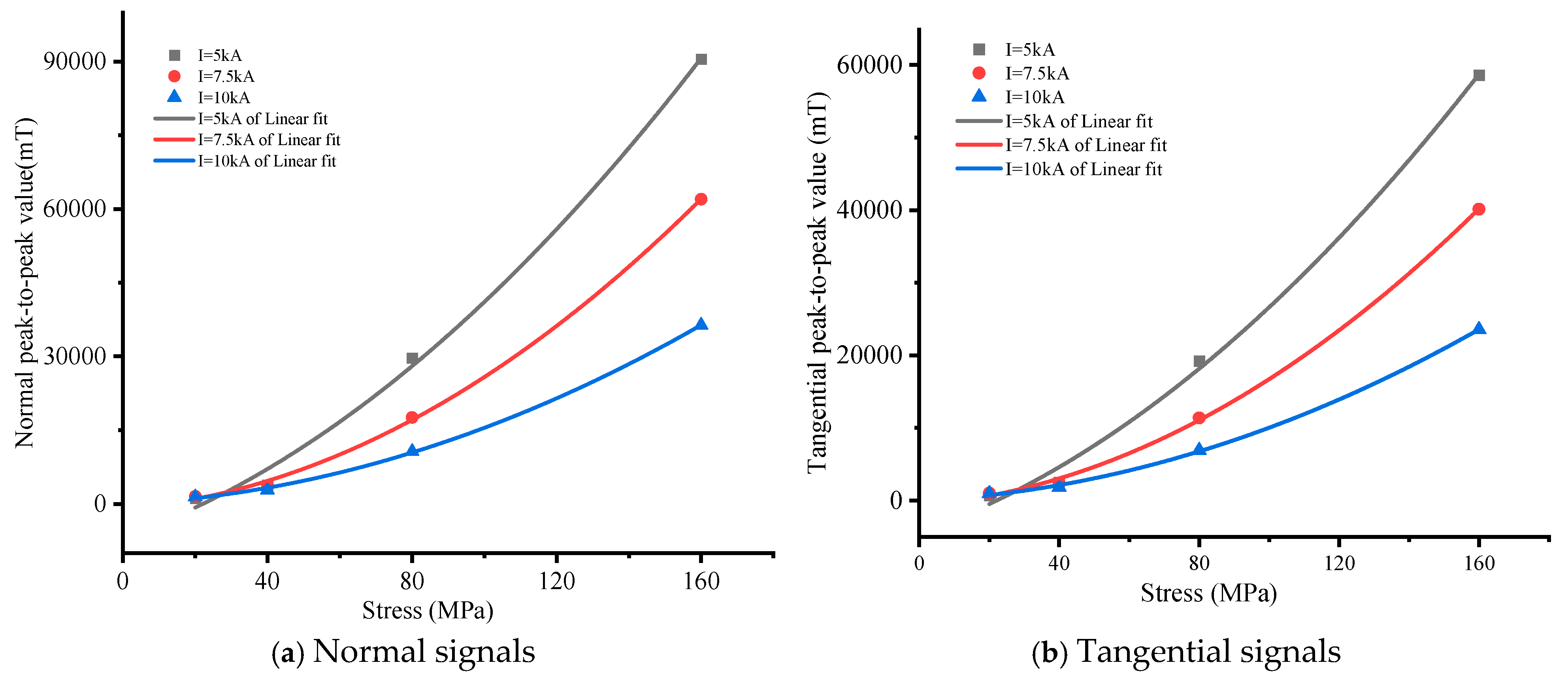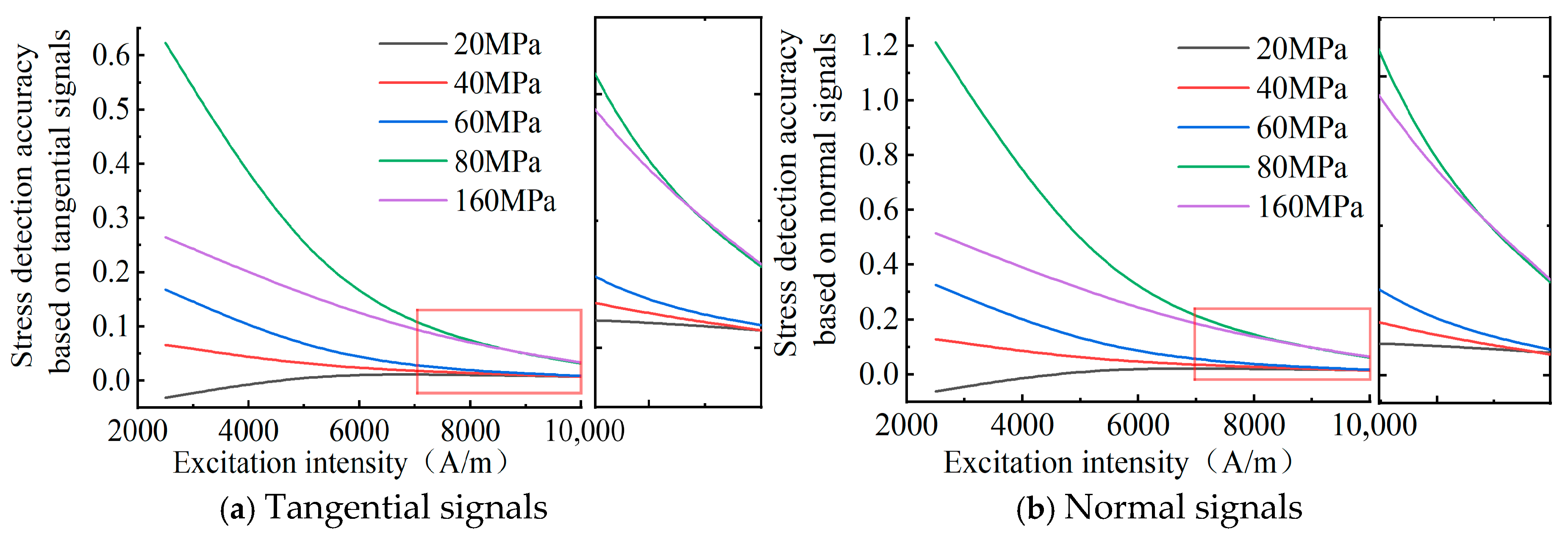 3.2. Weak Magnetic Signals for Stress Detection at Different Excitation Intensities