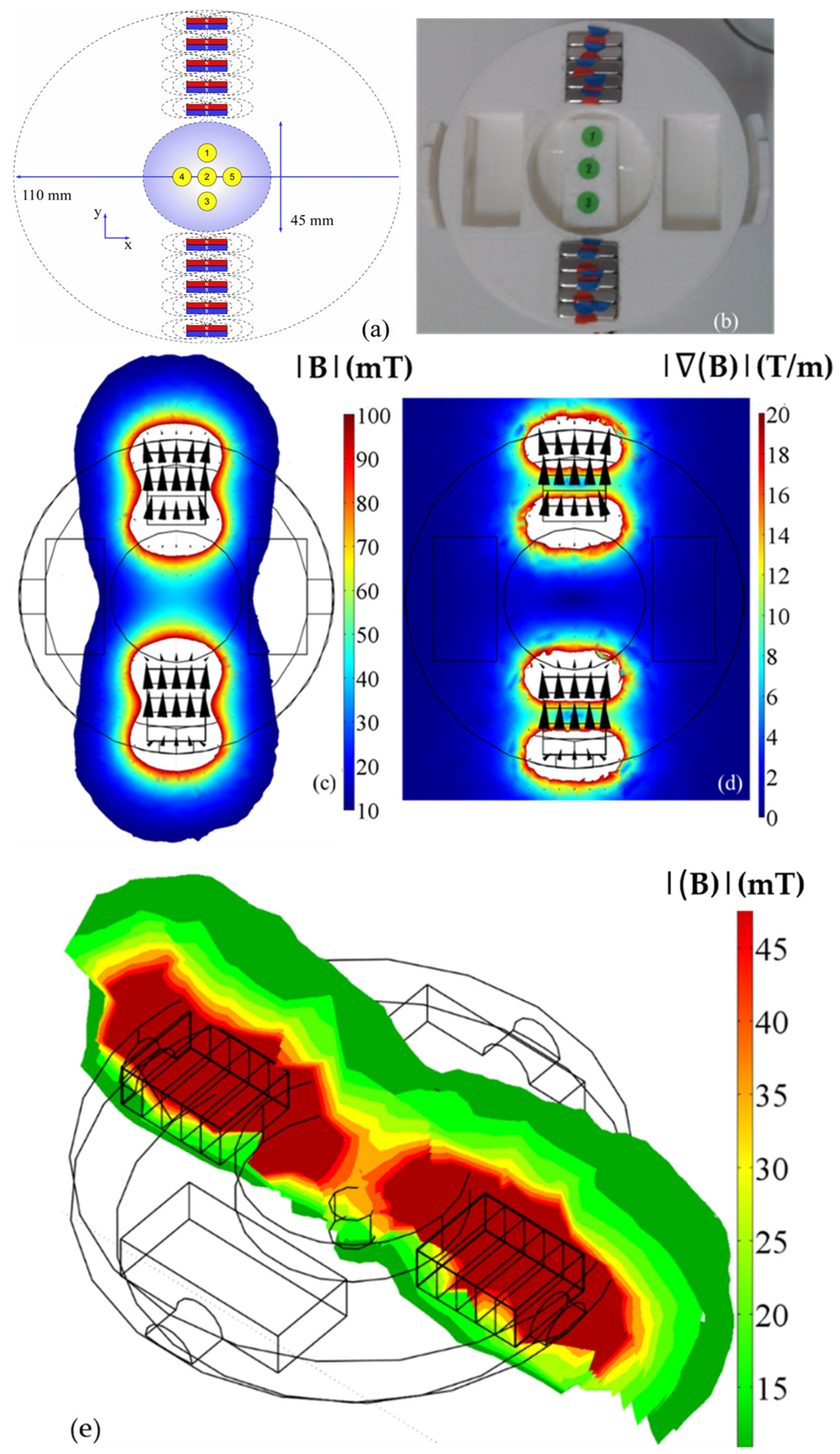 - Makridis, A.; Maniotis, N.; Papadopoulos, D.; Kyriazopoulos, P.; Angelakeris, M. A novel two-stage 3D-printed Halbach array-based device for magneto-mechanical applications. Magnetochemistry 2024, 10, 21. [Google Scholar] [CrossRef]