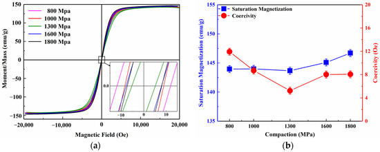 - Pan, Y.; Peng, J.; Qian, L.; Xiang, Z.; Lu, W. Effects of compaction and heat treatment on the soft magnetic properties of iron-based soft magnetic composites. Mater. Res. Express 2020, 7, 016115. [Google Scholar] [CrossRef]