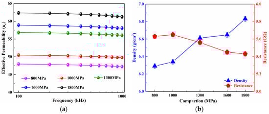 - Nguyen, M.P.; Yoshida, S.; Okamoto, S.; Miyazaki, T.; Endo, Y. Effect of compaction pressure on core loss in Fe-Ni powder cores for high frequency applications. IEEE Trans. Magn. 2024, 60, 2800104. [Google Scholar] [CrossRef]
