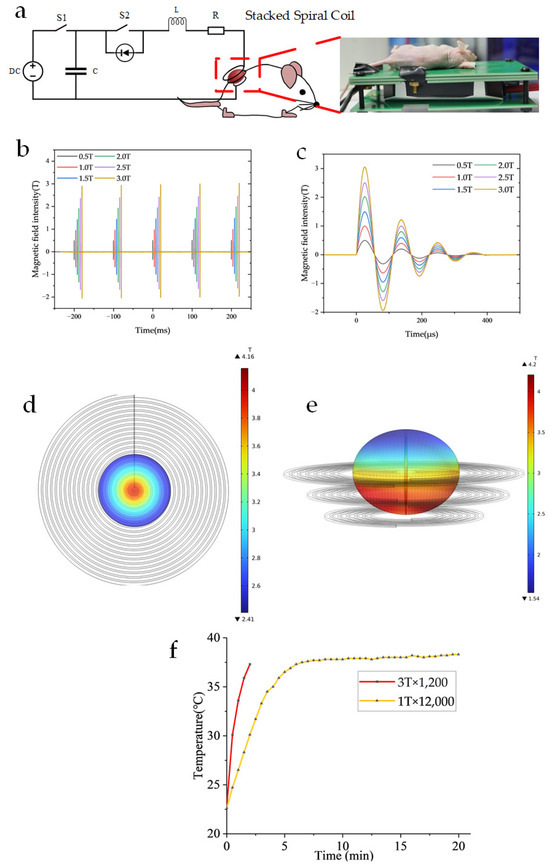 - Ma, C.; Li, Z.; Wang, J.; Mi, Y. High-Frequency Nanosecond Pulsed Magnetic Field Generator Utilizing Stacked Spiral Coil for Subcutaneous Tumor Ablation in Vivo. IEEE Trans. Plasma Sci. 2024, 52, 1406–1416. [Google Scholar] [CrossRef]