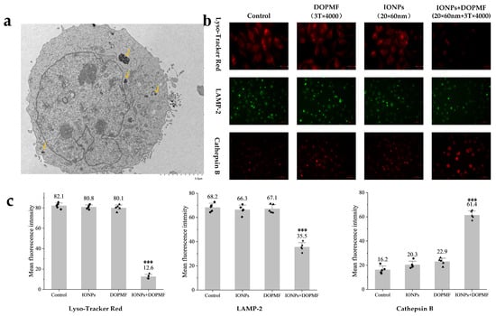 As shown in the TEM images (Figure 4a), a significant proportion of internalized IONPs were localized within lysosomal compartments. Based on this observation, we hypothesized that lysosomes loaded with IONPs would undergo MMF following DOPMF treatment, leading to lysosomal leakage and subsequent LDCD.