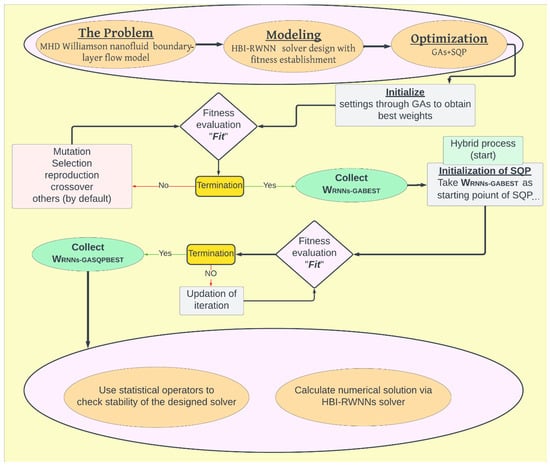 - Butt, Z.I.; Ahmad, I.; Raja, M.A.Z.; Hussain, S.I.; Ilyas, H.; Shoaib, M. MHD slip flow through nanofluids for thermal energy storage in solar collectors using radiation and conductivity effects: A novel design sequential quadratic programming-based neuro-evolutionary approach. Mod. Phys. Lett. B 2024, 37, 2550075. [Google Scholar] [CrossRef]