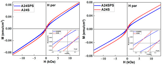 Extracted parameters from the fitting of the A24S and A24SPS samples’ hysteresis loops.
