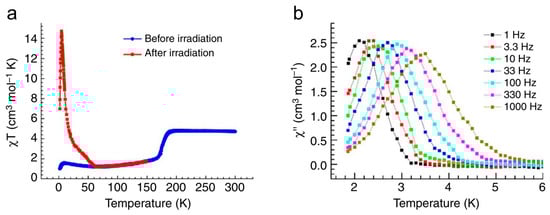 The χT–T (a) and χ″–T (b) of {[FeIII(Tp*)(CN)3]2FeII(bpmh)}·2H2O. Reprinted from Ref. [33].