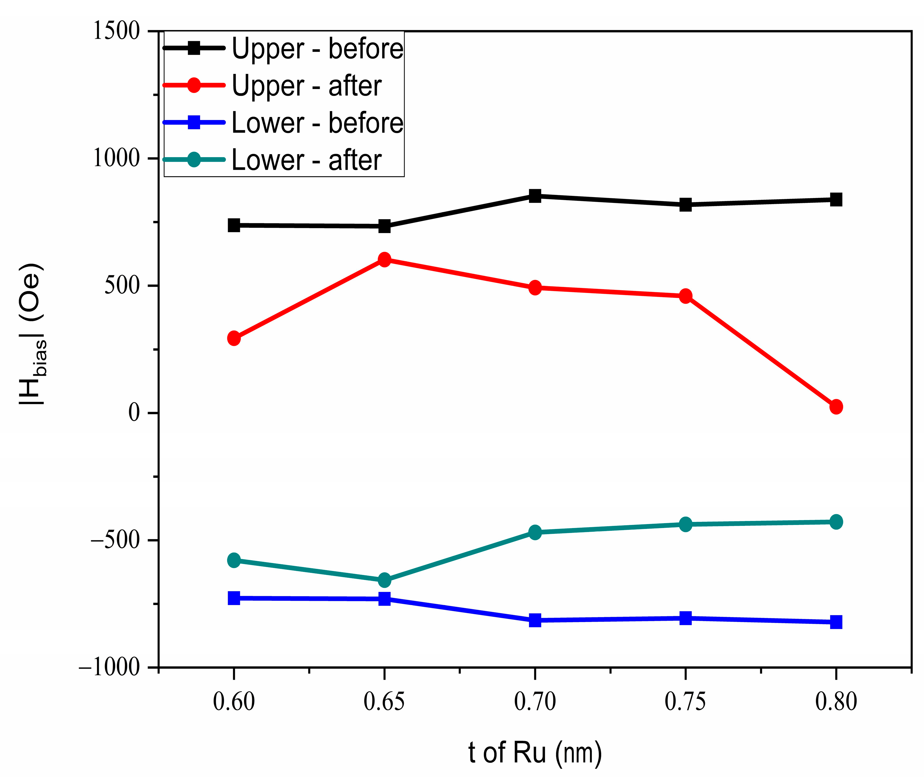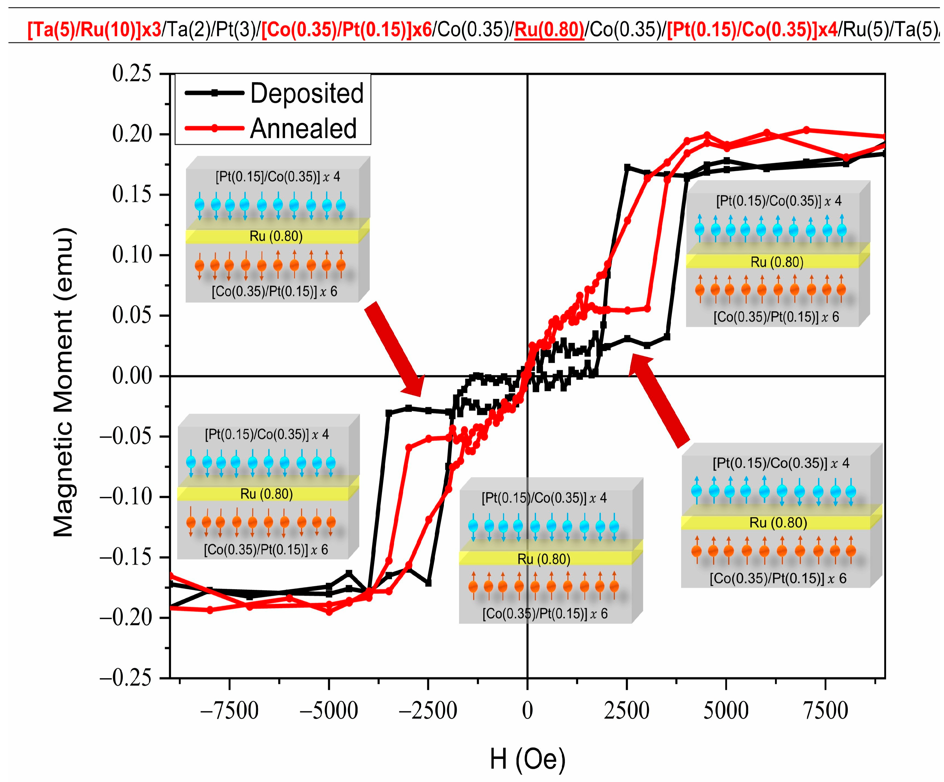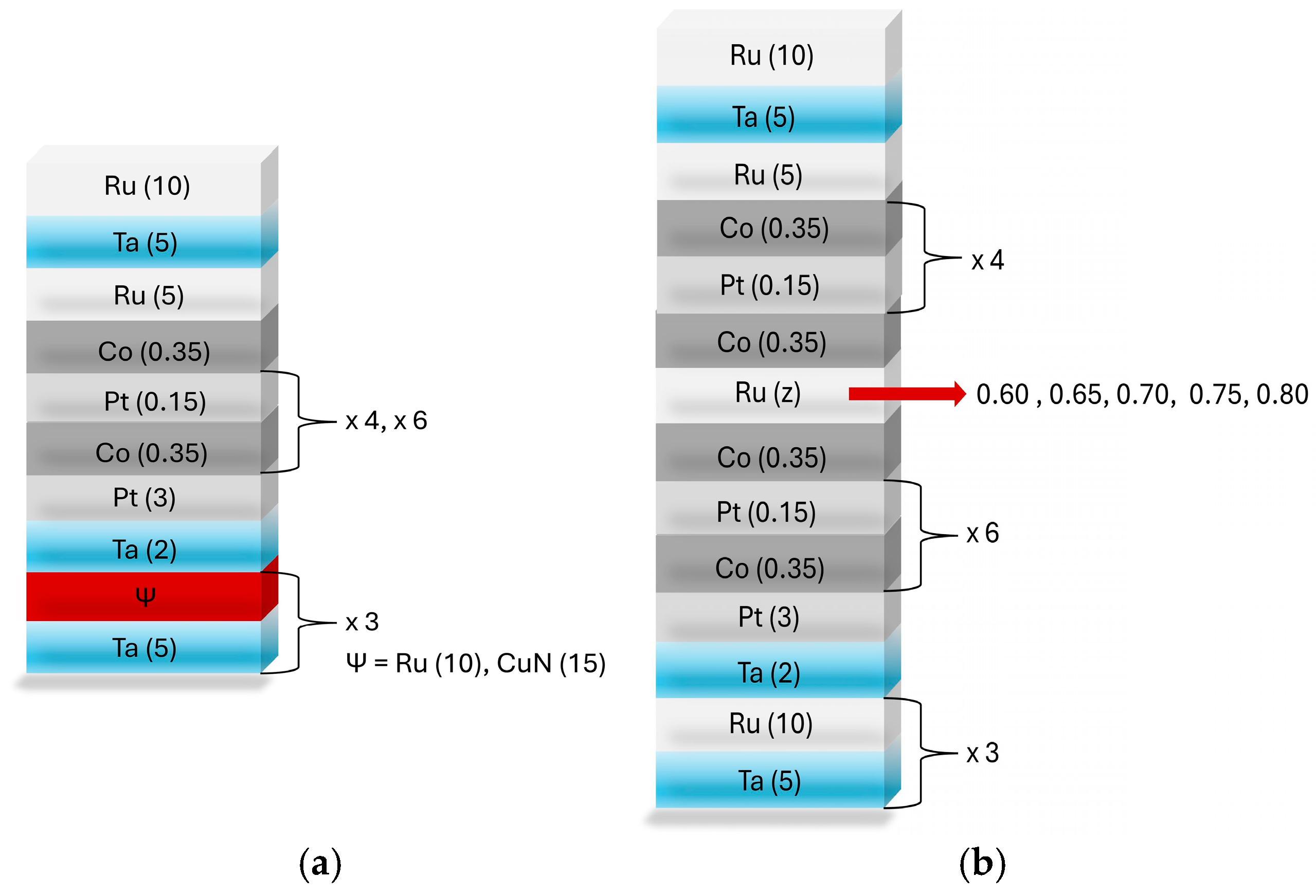 - Yang, C.L.; Lai, C.H. High thermal durability of Ru-based synthetic antiferromagnet by interfacial engineering with Re insertion. Nat. Sci. Rep. 2021, 11, 15214. [Google Scholar] [CrossRef] [PubMed]