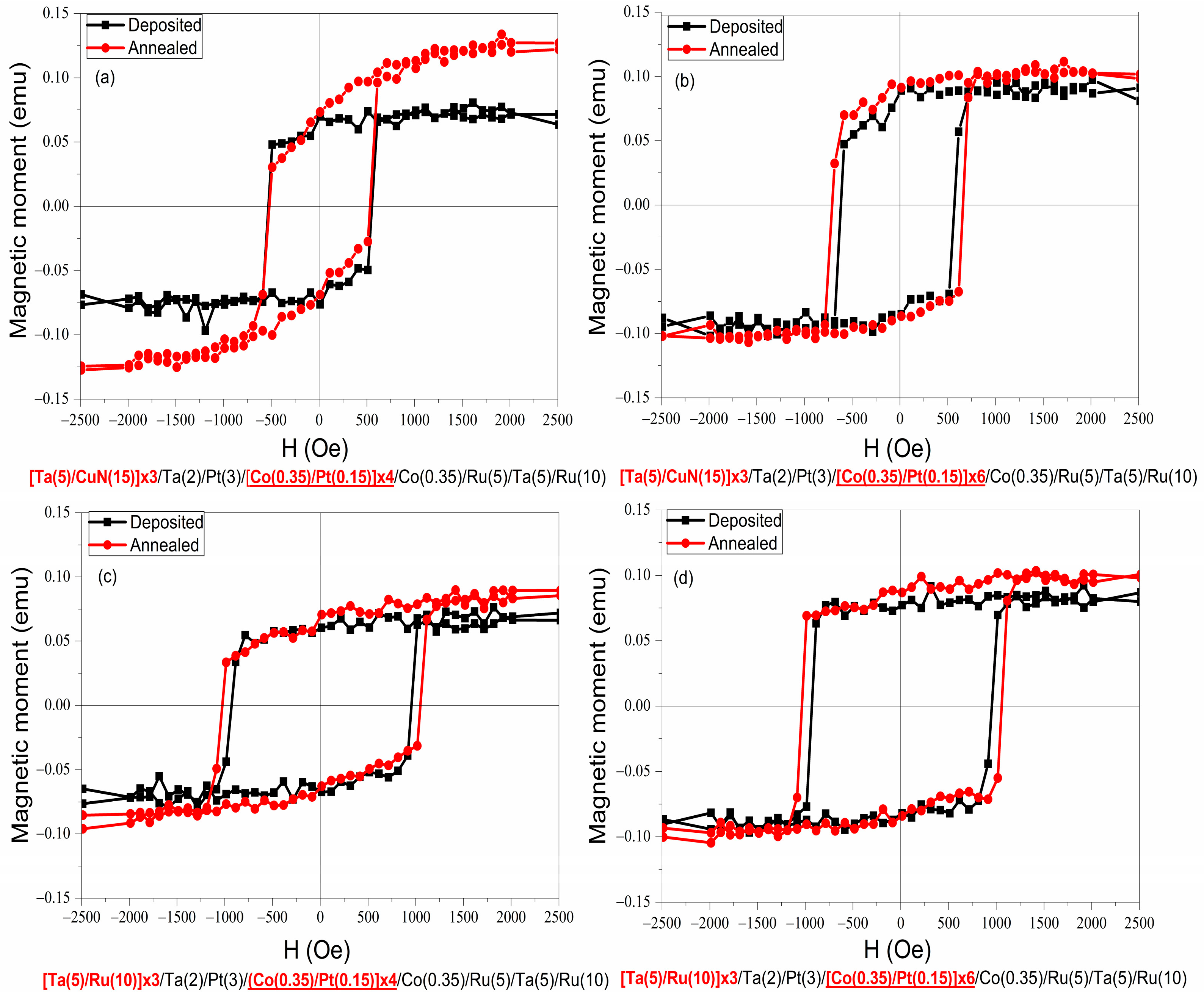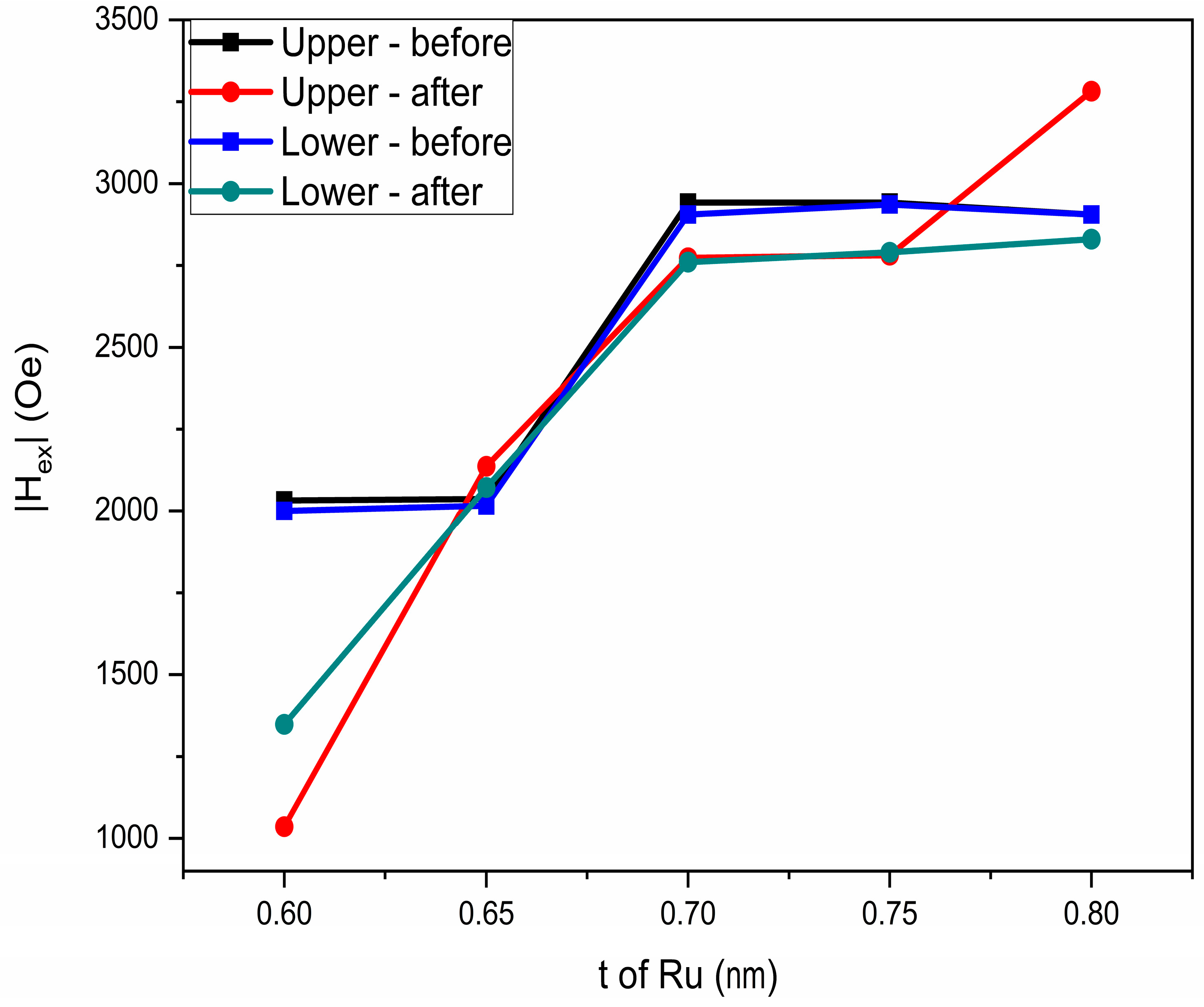 | [Ta(5)/Ru(10)]x3 | 4 | 943 Oe | 1041 Oe |