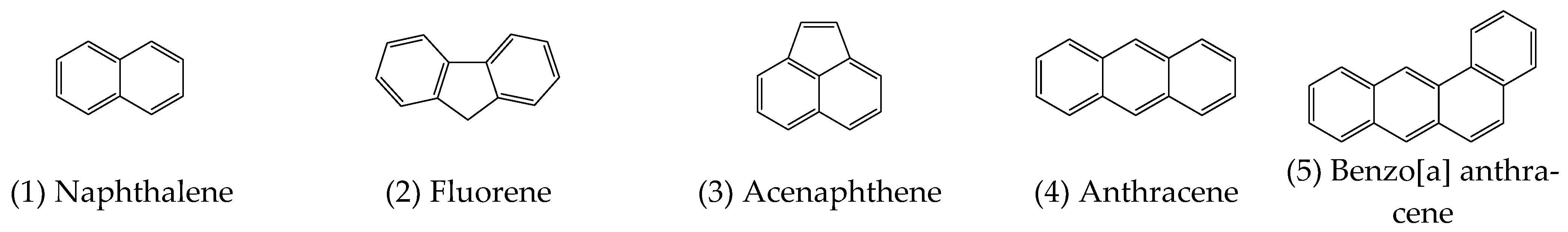 - Wisniowska, E.; Wlodarczyk-Makula, M. Adsorption of selected 3- and 4-ring polycyclic aromatic hydrocarbons on polyester microfibers preliminary studies. Desalin. Water Treat. 2021, 232, 414. [Google Scholar] [CrossRef]