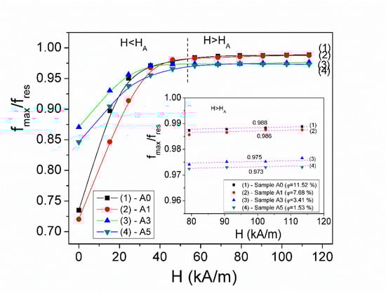 - Fannin, P.C. Use of Ferromagnetic Resonance Measurements in Magnetic Fluids. J. Mol. Liquids 2004, 114, 79–87. [Google Scholar]
