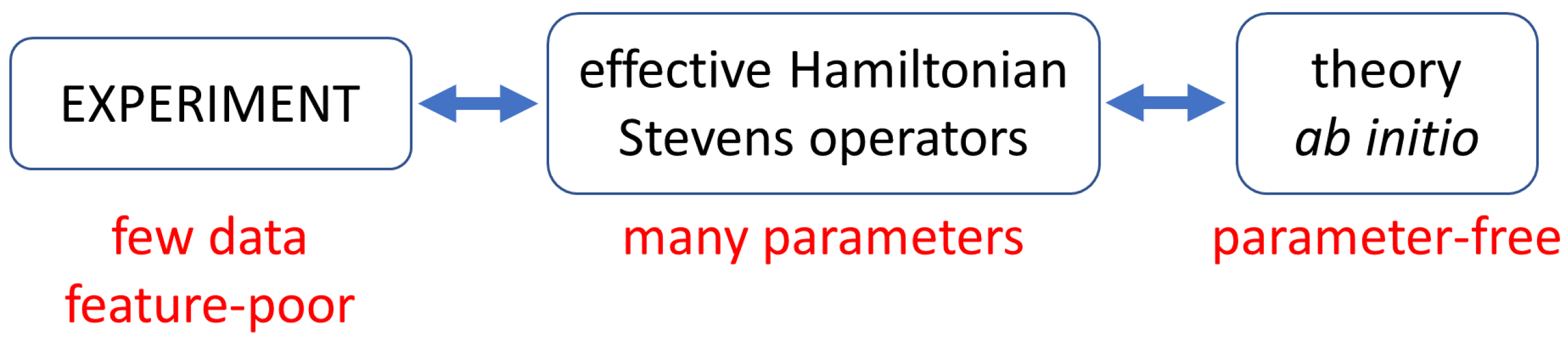 - Waldmann, O. Relation between Electrostatic Charge Density and Spin Hamiltonian Models of Ligand Field in Lanthanide Complexes. Inorg. Chem. 2025, 64, 1365–1378. [Google Scholar] [CrossRef]