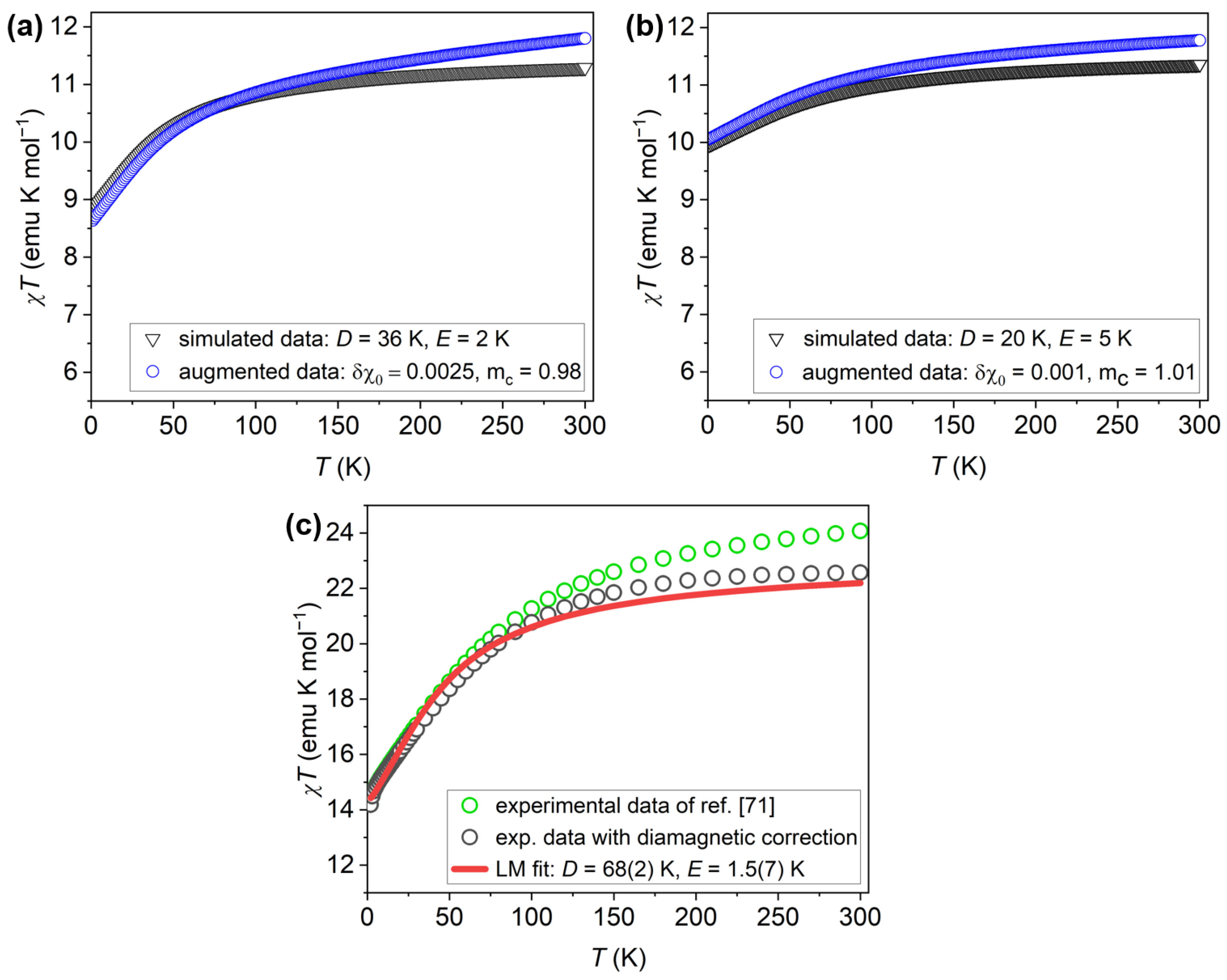 - Ali, Z.A.; Mutschler, J.; Waldmann, O. Determination of ligand field parameters of single-molecule magnets from magnetic susceptibility using deep learning based inverse models. Phys. Rev. B 2025, 112, 064403. [Google Scholar] [CrossRef]