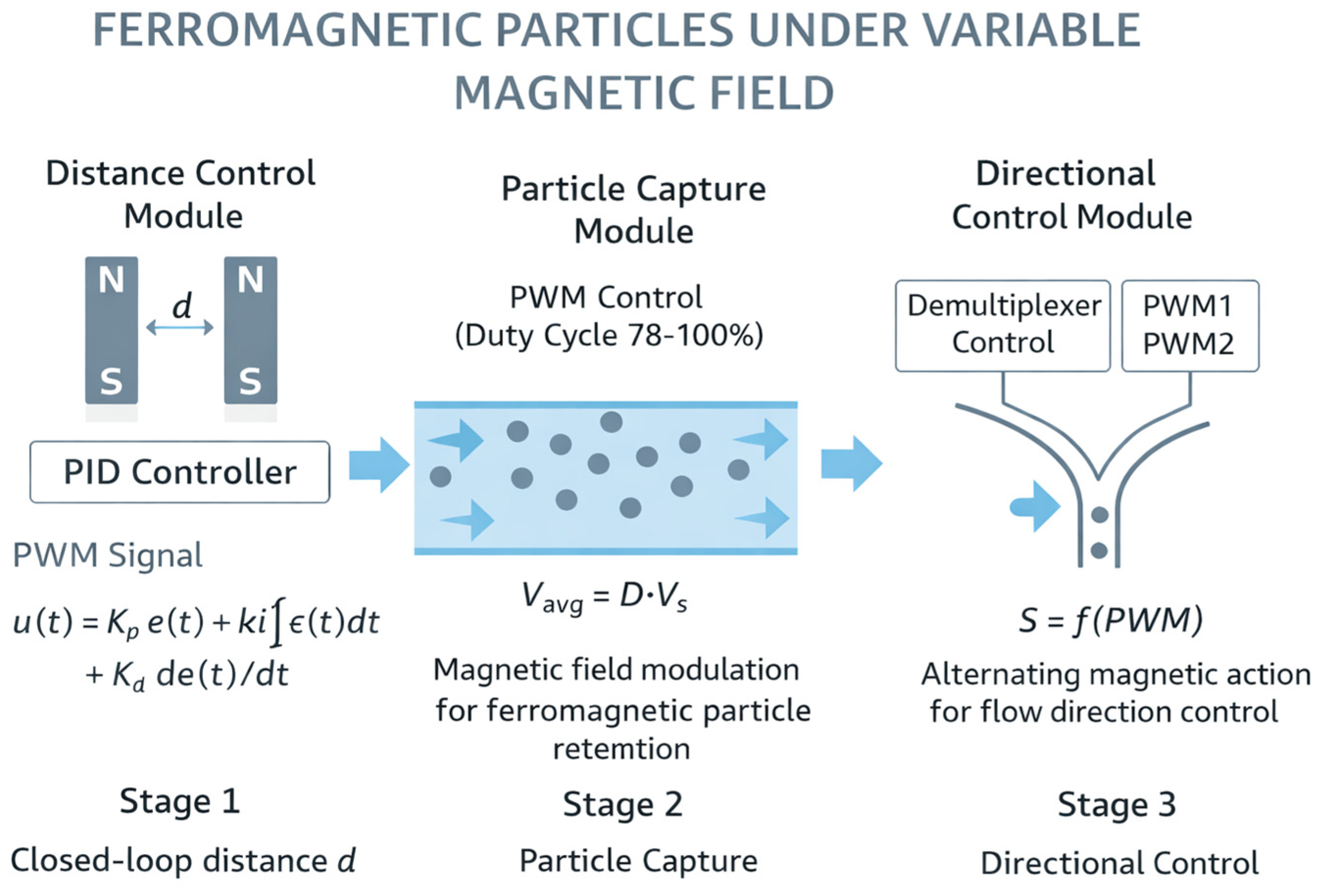 Salcedo Muciño JA, Flores Campos JA, Casares Duran AA, Paredes Rojas JC, Mojica Martínez JJ, Torres-SanMiguel CR. Electromagnetic Control of Ferromagnetic Particle Movement Using PID and PWM. Magnetochemistry. 2026; 12(4):48. https://doi.org/10.3390/magnetochemistry12040048