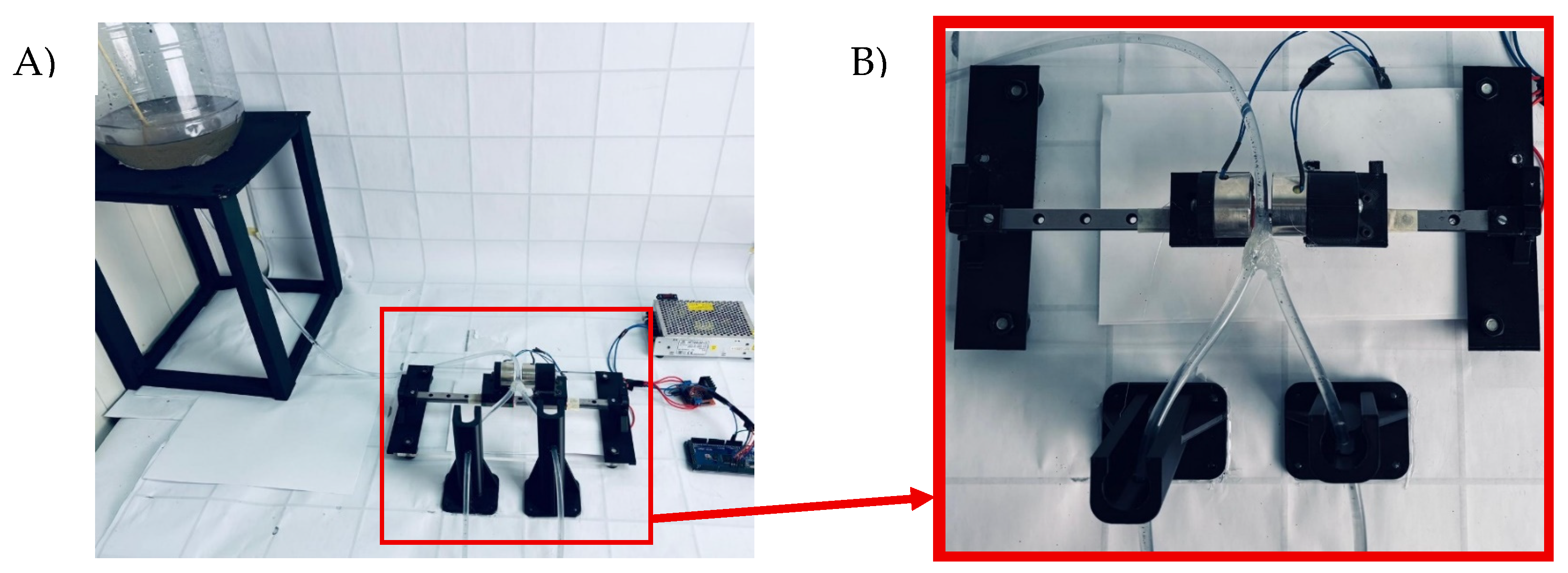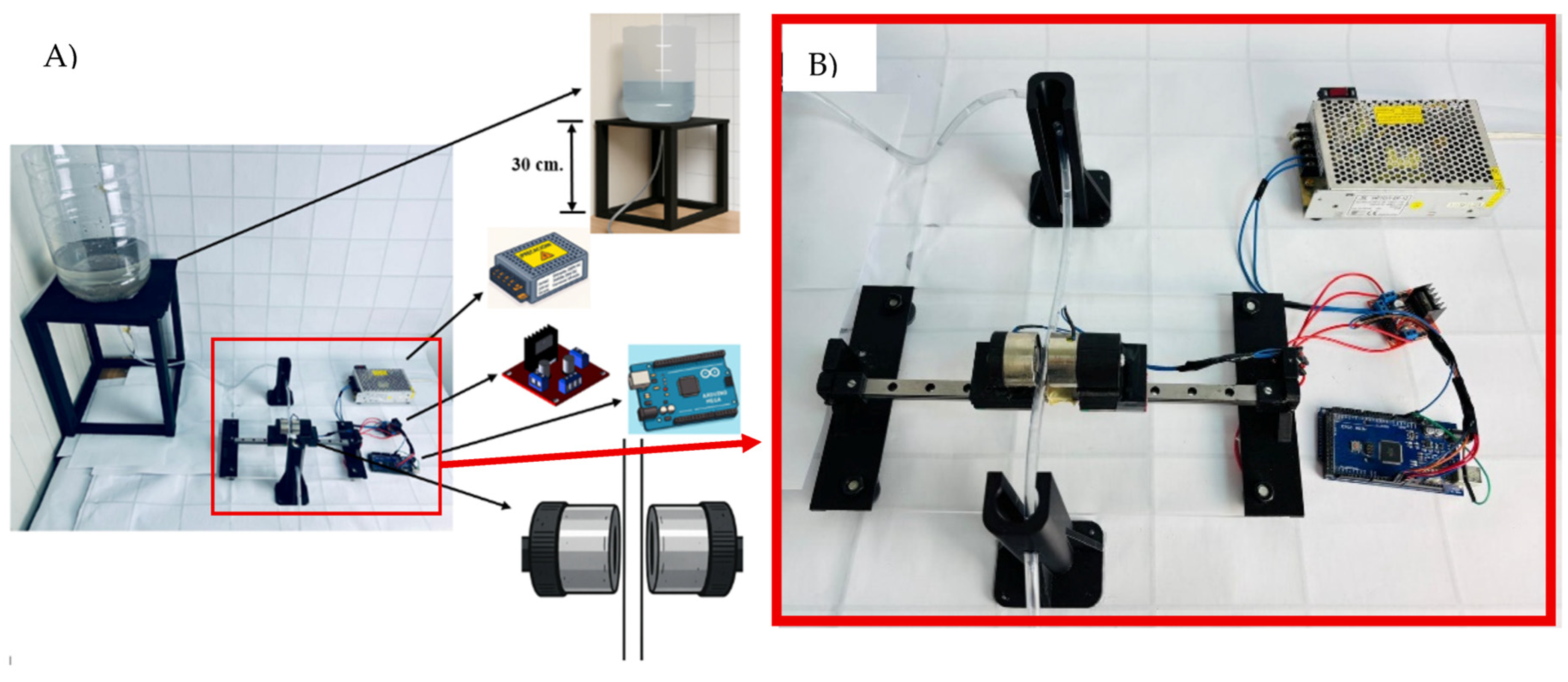 3.2. Experiment 2: Capture of Ferromagnetic Particles in a Hydraulic Flow Under Induced Magnetic Field