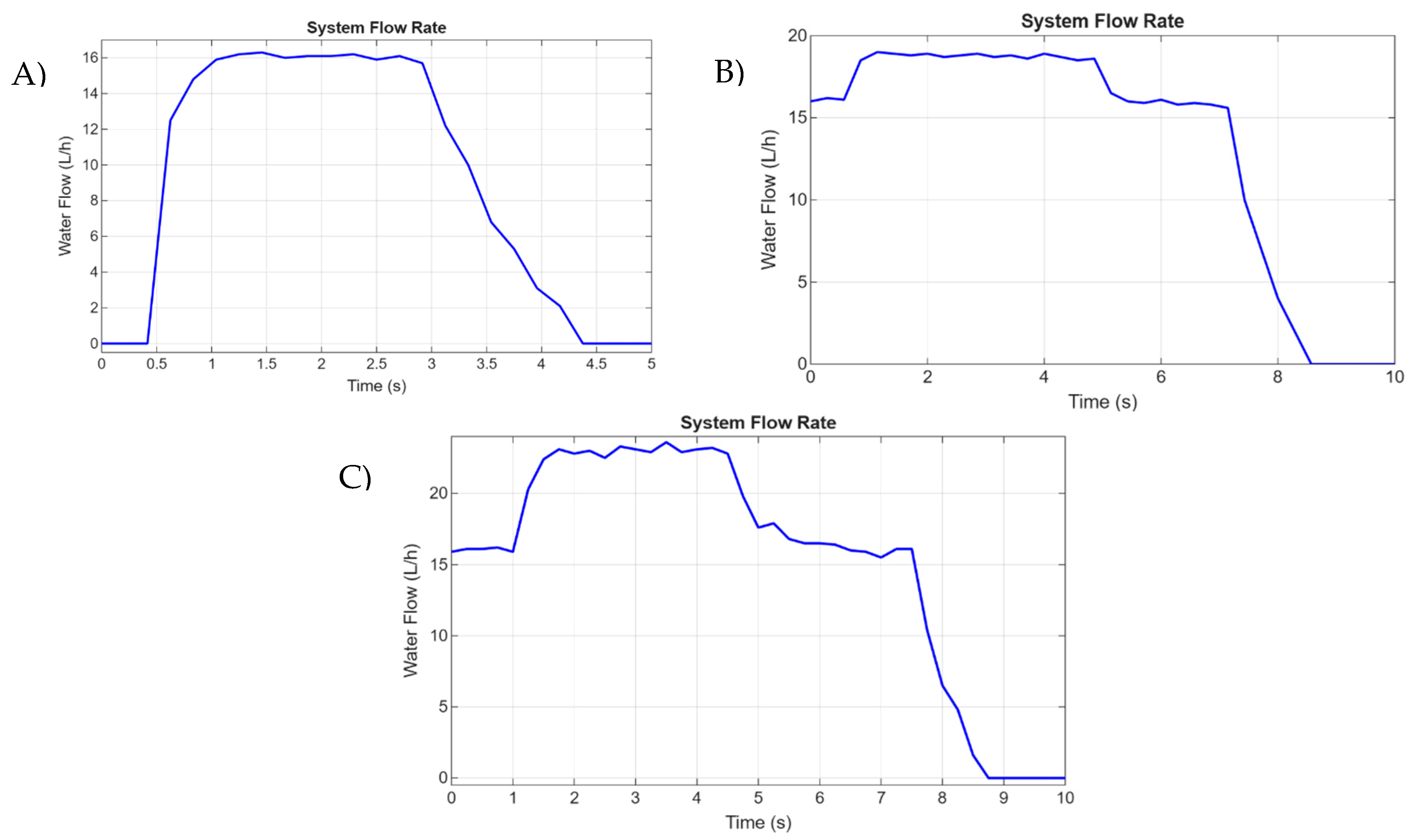 | Case Study | Flow Rate (L/h) | PWM | Magnetic Force (N) | Voltage (V) | Current (mA) | |