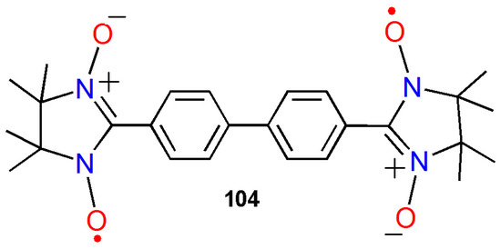 Baumgarten et al. have described the strong AFM interactions in biphenyl-4,4’-bis(nitronylnitroxide) (104) (Chart 5) in solution as well as in the solid state [141]. The strength of the AFM intra-dimer coupling constant was found to be J/KB In addition, a magnetic field–induced transition for the field distinctly above 20 T was suggested from the inter-dimer coupling J’/kB at 1 K, which is contingent on the topology of the magnetic couplings.