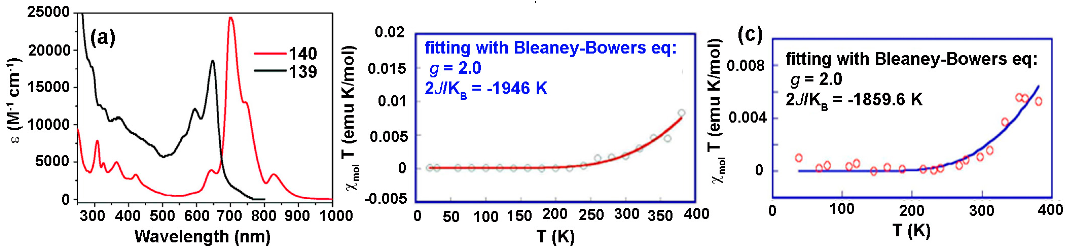 - Yong, G.P.; Li, C.F.; Li, Y.Z.; Luo, S.W. New zwitterionic radical salts: Dimers in solution and unusual magnetic and luminescent properties in the solid state. Chem. Commun. 2010, 46, 3194–3196. [Google Scholar] [CrossRef] [PubMed]