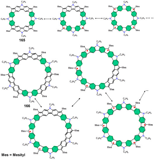 - Das, S.; Herng, T.S.; Zafra, J.L.; Burrezo, P.M.; Kitano, M.; Ishida, M.; Gopalakrishna, T.Y.; Hu, P.; Osuka, A.; Casado, J.; et al. Fully fused quinoidal/aromatic carbazole macrocycles with polyradical characters. J. Am. Chem. Soc. 2016, 138, 7782–7790. [Google Scholar] [CrossRef] [PubMed]
