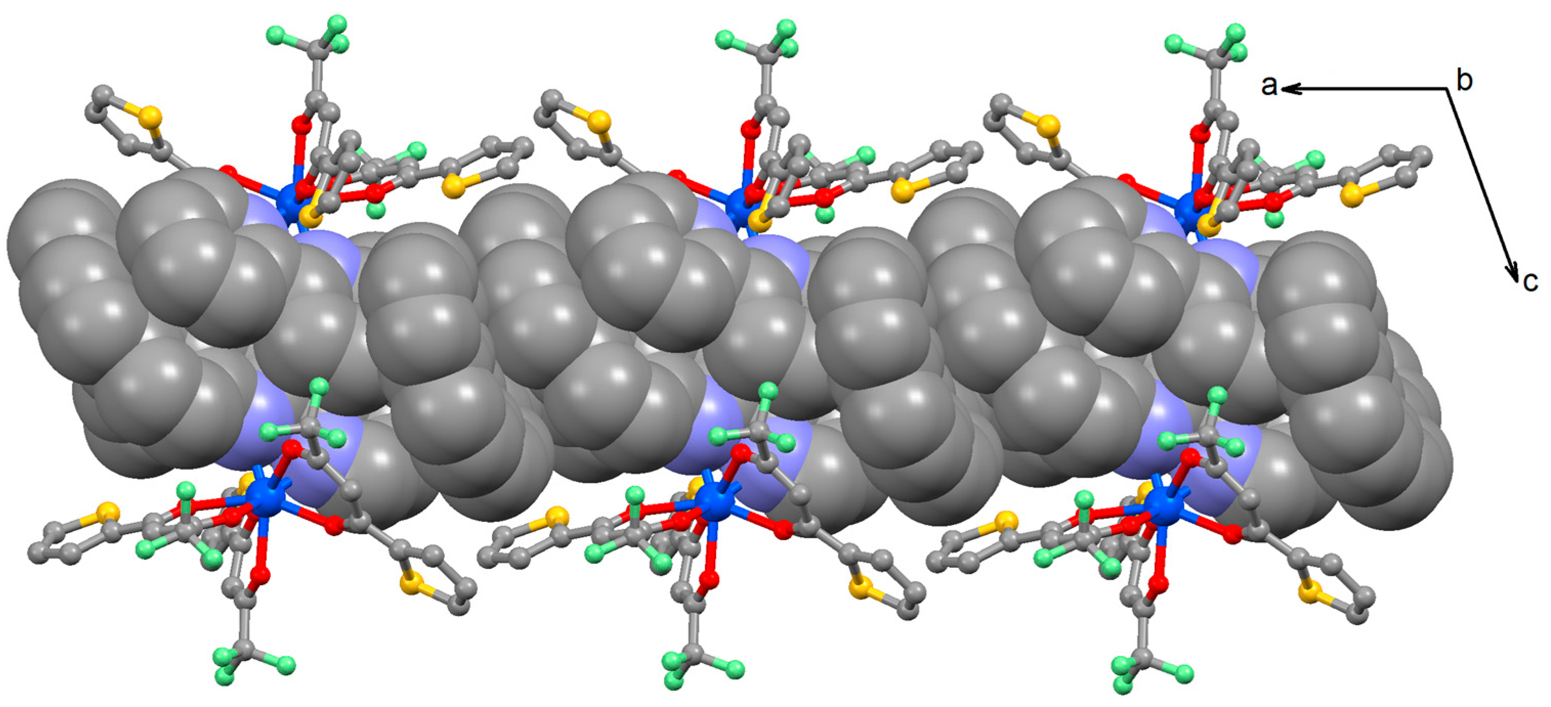 3.2. Synthesis of Complex [Dy(tta)3(L)]·CH2Cl2·C7H8 (1)