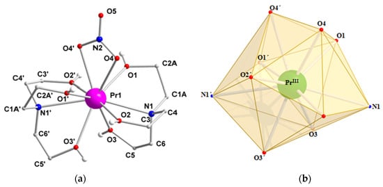3.4. Synthesis of [Pr(NO3)(teaH3)2](NO3)2 (6)