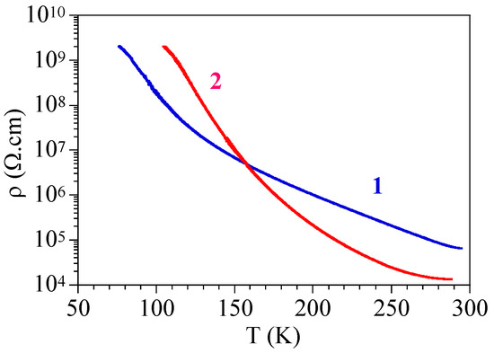Thermal variation of the electrical resistivity of compounds 1 and 2.