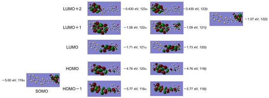 Molecular orbitals of donor 1 calculated on the basis of the DFT method at UB3LYP/6-31G (d, p) level.