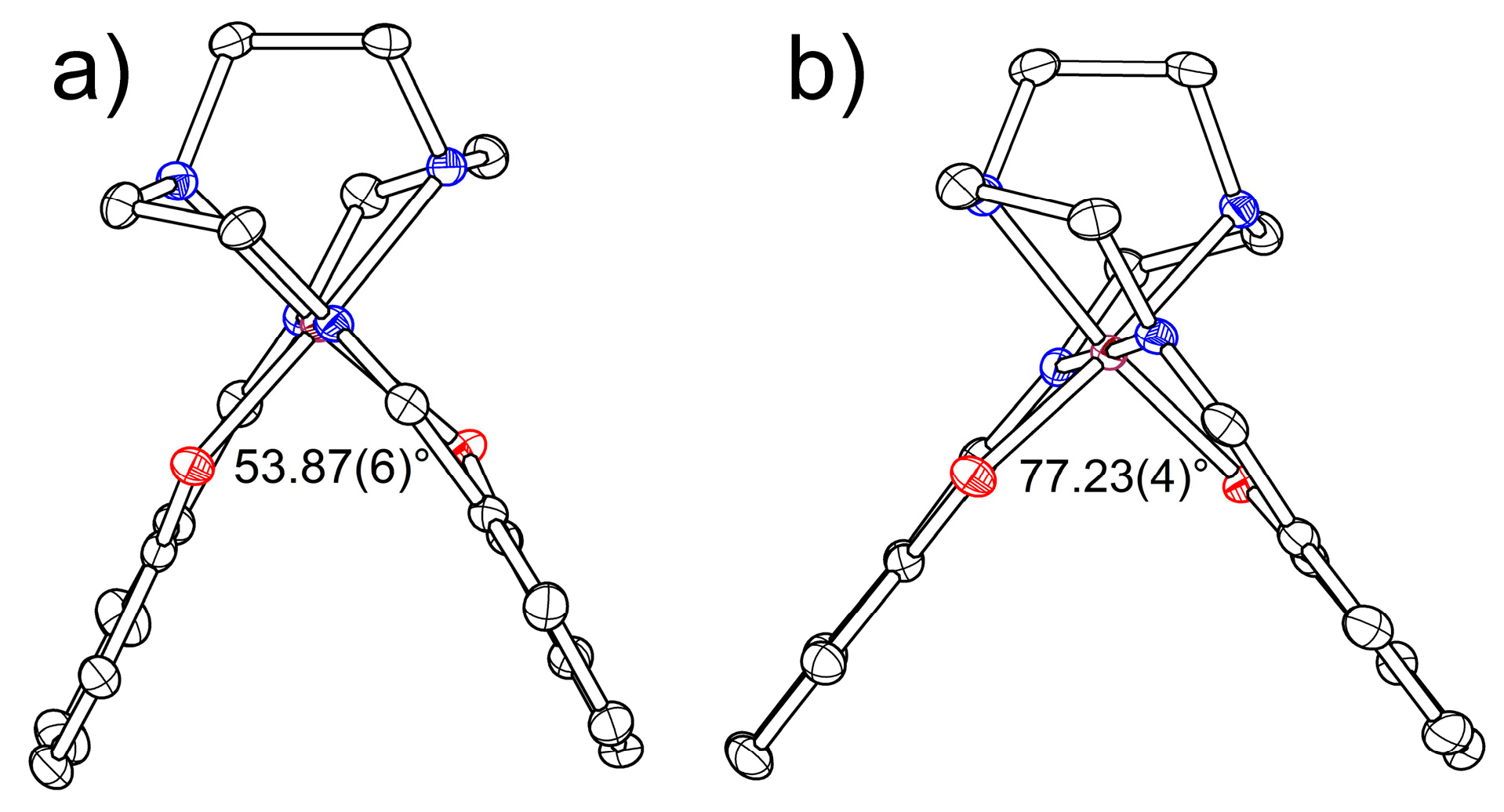 Molecular conformation of the [Fe(III)(sal2-trien)]+ cation at 100 K in 1·MeOH (a) and 2 (b).