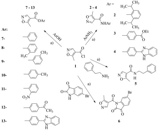 Synthesis of 5-methyl-4-isoxazole derivatives (2–13).