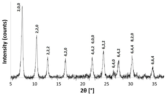 - Treacy, M.M.J.; Higgins, J.B. Collection of Simulated XRD Powder Patterns for Zeolites; Elsevier: Amsterdam, The Netherlands, 2007; pp. 252–253. [Google Scholar]