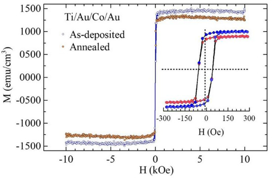 - Rizal, C.; Fullerton, E. Perpendicular magnetic anisotropy and microstructure properties of nanoscale Co/Au multilayers. J. Phys. D Appl. Phys. 2017, 50, 355002. [Google Scholar] [CrossRef]