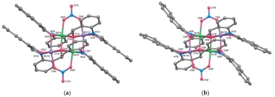 - Koikawa, M.; Ohba, M.; Tokii, T. Syntheses, structures, and magnetic properties of tetranuclear NiII4 and NiII2MnIII2 complexes with ONO tridentate ligands. Polyhedron 2005, 24, 2257–2262. [Google Scholar] [CrossRef]