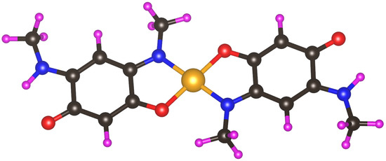 We modeled the square-planar NiQ molecule structure according to the reported data [38]. To start with, we optimized the geometry of the isolated NiQ molecule in the gas phase. The optimized structure of NiQ is shown in Figure 1. The molecule remains planar with average Ni–O(N) bond lengths of the molecule being 1.868 Å, which is close to the experimental value (1.866 Å).