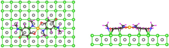 Growing molecules on magnetic as well as inert surfaces with atomic precision is one of the approaches to develop such devices. Immobilized magnetic metal–organic molecules with tailorable magnetic properties can be deposited on solid substrates to construct building blocks for molecular spintronic devices [11,12]. In this process, the molecules exhibit magnetic stability at higher temperatures due to the substrate induced magnetic exchange coupling and/or substrate induced magnetic anisotropy [13,14,15]. Moreover, new magnetochemical properties arise due to the molecule–substrate interaction that can also offer an advantage over traditional spintronics [16,17,18,19,20]. It has been observed that magnetic molecules reacting on a metallic surface may lose their magnetic properties by coupling with the electrodes, even if they remain intact [21]. Hence, a proper understanding of molecule–substrate interactions is essential and needs to be achieved well before its technological application in data storage, sensor, quantum computing, or other single molecular spintronic device applications [22].