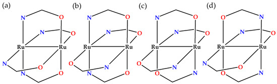 29. Miskowski, V.M.; Gray, H.B. Electronic spectra of Ru2(carboxylate)4+ complexes. Higher energy electronic excited states. Inorg. Chem. 1988, 27, 2501–2506. [Google Scholar] [CrossRef]