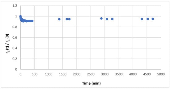 Evolution of R1p (t)/R1p (t = 0) vs. time for the complex 7a in the presence of Zn2+ ions in phosphate buffer solution.