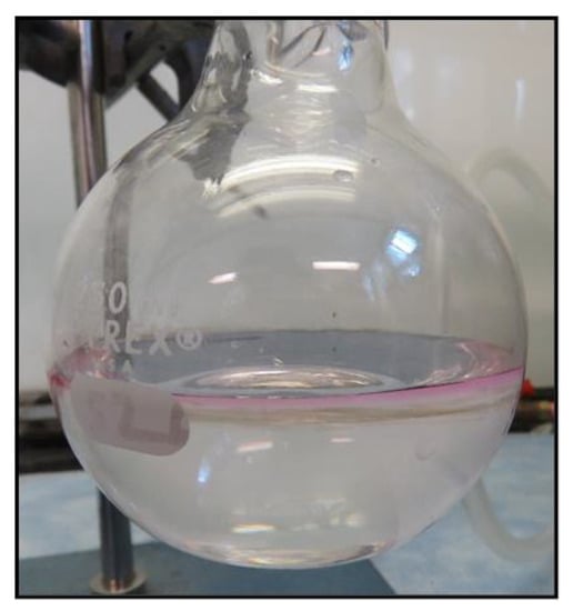 The following are available online at https://www.mdpi.com/2312-7481/6/2/22/s1. Figure S1. NH3(g) (3.3% v/v, 25 mL/min (NTP) makeup with N2) sprayed over wet litmus paper. Figure S2. Synthesis of a nonmagnetic iron oxide from an iron salt solution (1.0 mM ∑Fe and 2:1 Fe2+:Fe3+) with 3.3% (v/v) NH3(g). Since the intention of this work was the synthesis of phase pure MNPs with high yield, only 1 mM total Fe2+, Fe3+ was studied (Figure S2). This synthesis did not result in a high MNP yield as evidenced by non-magnetic particles that remained in suspension (Figure 5 and Figure 6).