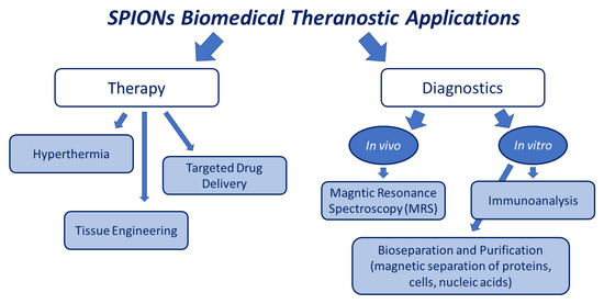 In recent years, SPIONs have shown great potential in a wide range of medical and near-medical fields (Figure 2). Below we will review particular applications of SPIONs.