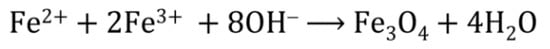 A concomitant reaction is the oxidation of magnetite to maghemite with atmospheric oxygen. Therefore, this method produces magnetic nanoparticles that are intermediate in composition between magnetite and maghemite [25,26]. To obtain predominantly magnetite nanoparticles, this reaction is eliminated by passing inert gases argon or nitrogen through reagent solutions. Depending on the type of iron salts, the nature of the precipitating agent, solvents, temperature and pH control, magnetite nanoparticles 1–40 nm in size have been prepared by co-precipitation method.