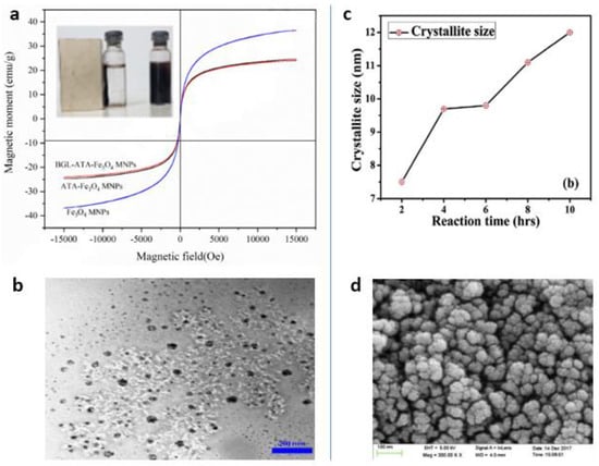 - Karade, V.C.; Dongale, T.D.; Sahoo, S.C.; Kollu, P.; Chougale, A.D.; Patil, P.S.; Patil, P.B. Effect of reaction time on structural and magnetic properties of green-synthesized magnetic nanoparticles. J. Phys. Chem. Solids 2018, 120, 161–166. [Google Scholar] [CrossRef]