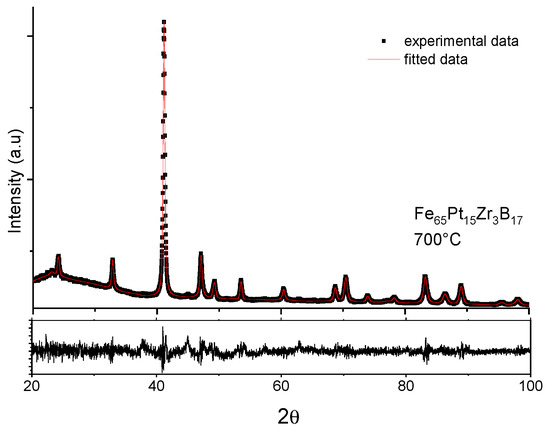 MAUD fitting of the XRD diagram of the sample annealed at 700 °C for 30 min.