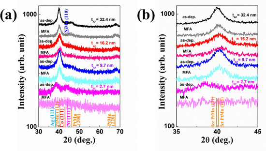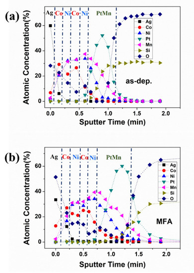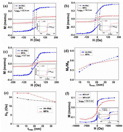 - Soeya, S. Enhanced exchange anisotropy between antiferromagnetic PtMn and ferromagnetic Co system by AuCu underlayer. Appl. Phys. Lett. 2009, 94, 242507. [Google Scholar] [CrossRef]
