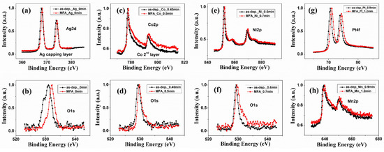- Lin, K.W.; Lin, F.T.; Tzeng, Y.M. X-ray photoelectron spectroscopy and magnetic force microscopy studies of ion-beam deposited Ni80Fe20/Co-oxide bilayers. IEEE Trans. Magn. 2005, 41, 927. [Google Scholar] [CrossRef]