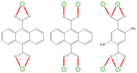 - Almeida Paz, F.A.A.; Klinowski, J.; Vilela, S.M.F.; Tomé, J.P.C.; Cavaleiro, J.A.S.; Rocha, J. Ligand design for functional metal–organic frameworks. Chem. Soc. Rev. 2011, 41, 1088–1110. [Google Scholar] [CrossRef]