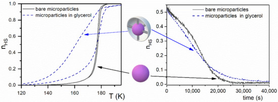 - Enachescu, C.; Tanasa, R.; Stancu, A.; Tissot, A.; Laisney, J.; Boillot, M.L. Matrix-assisted relaxation in Fe(phen)(2)(NCS)(2) spin-crossover microparticles, experimental and theoretical investigations. Appl. Phys. Lett. 2016, 109, 031908. [Google Scholar] [CrossRef]