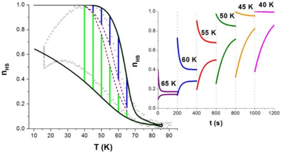- Tanasa, R.; Enachescu, C.; Laisney, J.; Morineau, D.; Stancu, A.; Boillot, M.L. Unraveling the Environment Influence in Bistable Spin-Crossover Particles Using Magnetometric and Calorimetric First-Order Reverse Curves. J. Phys. Chem. C 2019, 123, 10120–10129. [Google Scholar] [CrossRef]