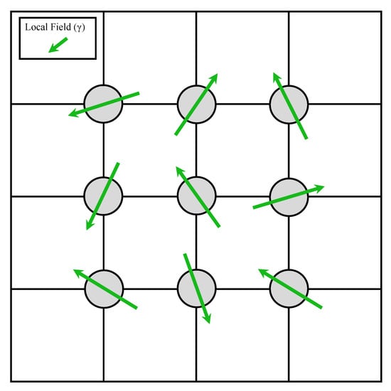 Vertex local fields: Each site possesses a single local field vector , which exerts a torque on the spin hopping to that site, as shown in Figure 3. This model was employed in [12,34].